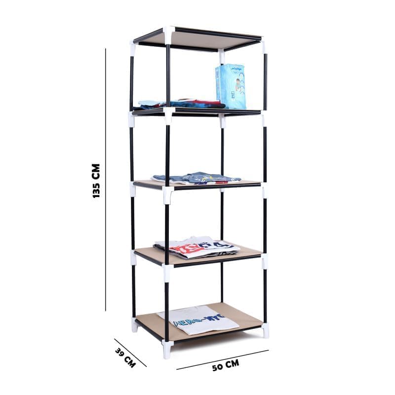 Generic - دولاب تخزين ملابس من القماش بتصميم قابل للطى أربعة أرفف مقاس 39X50X135CM سم لون بنى
