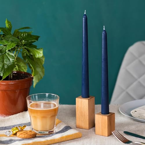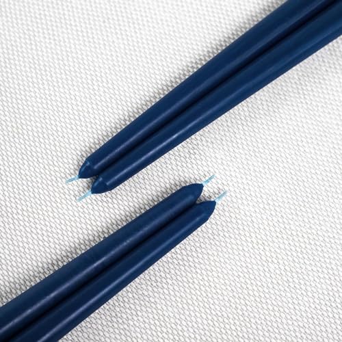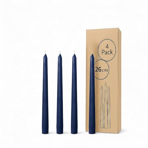 Generic - 4 شموع مدببة - وقت احتراق 10 ساعات- ثلاثة أحجام مختلفة - بدون دخان - تناسب جميع حوامل الشموع - نظيفة ومتساوية الاحتراق - مثالية لحفلات الزفاف (أزرق غامق، مقاس صغير، 26 سم)