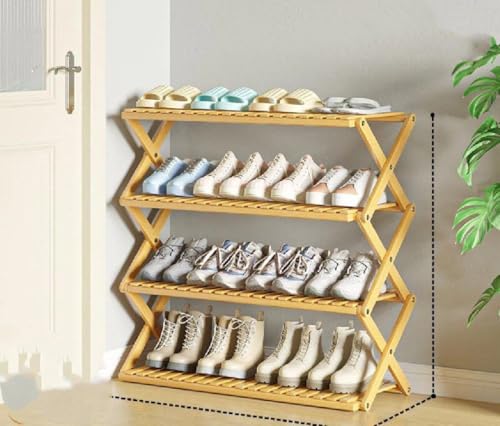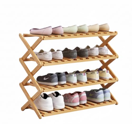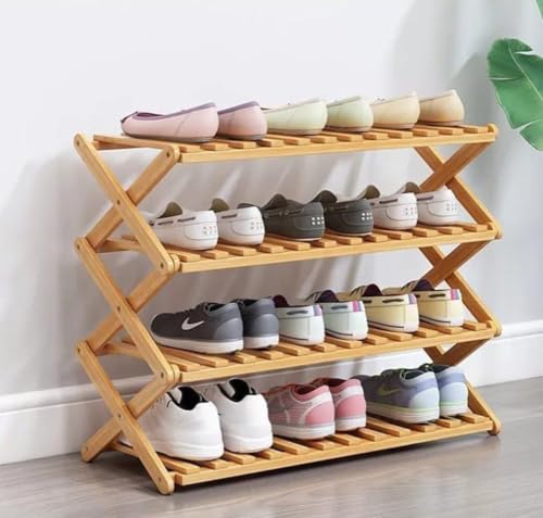 Generic - جزامة خشب بامبو قابلة للطي بتصميم 4 أدوار – متعددة الاستخدامات لتنظيم الأحذية والديكور في المنزل والمكتب Br