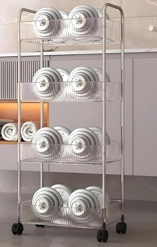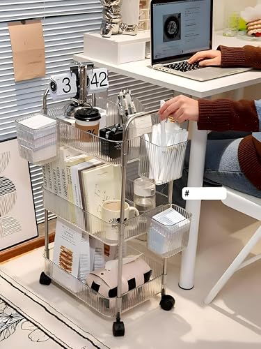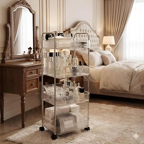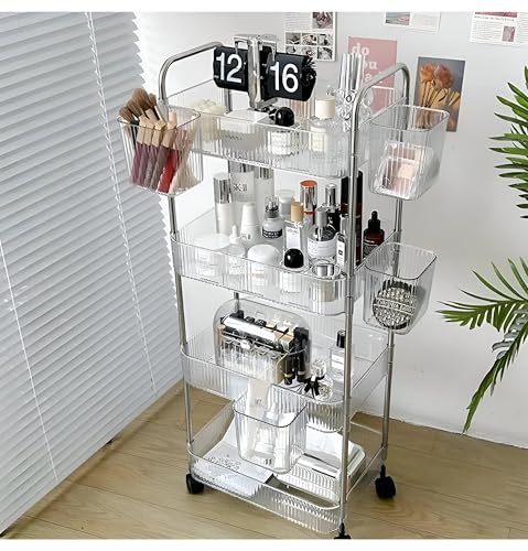 Generic - منظم من 4 طبقات، رف شفاف مع عجلات دوارة ناعمة لتخزين مستحضرات التجميل ومنتجات العناية بالبشرة وتوابل المطبخ ومستلزمات الحمام وديكور الغرفة بهيكل قوي، مقاس 95 × 40 سم