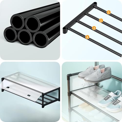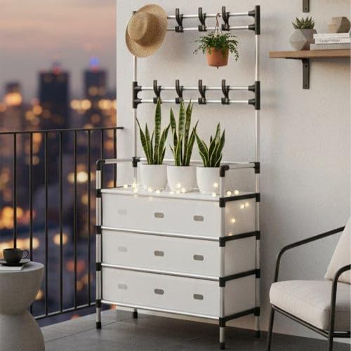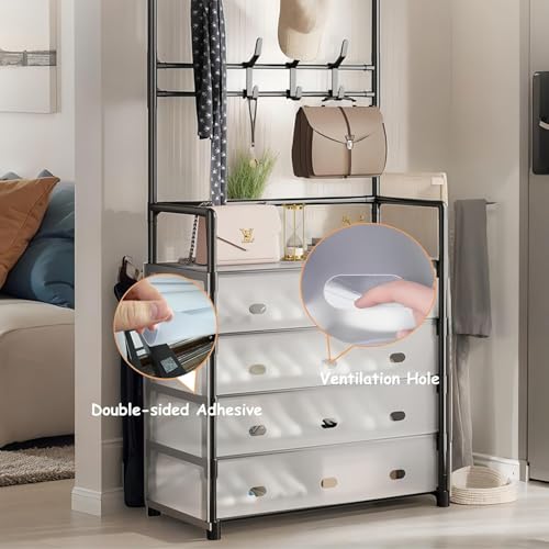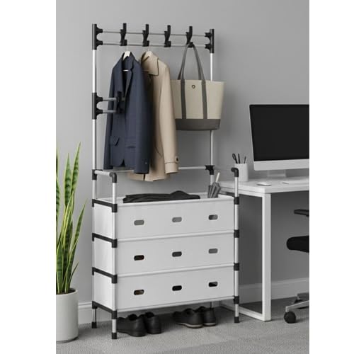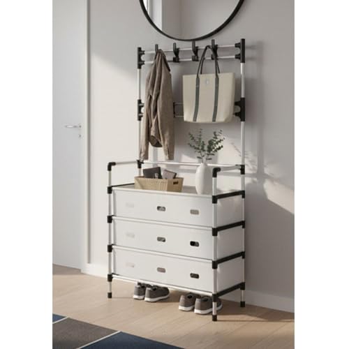 Generic - جزامة محمولة من 4 طبقات مع أغطية مع رف معطف محمول لمدخل الباب الأمامي، منظم وحامل أحذية مع 8 خطافات بلاستيكية قابلة للفك