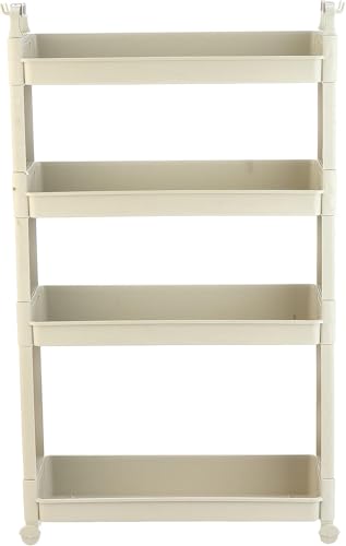 EBASKT - عربة تخزين دوارة من 4 طبقات، كريمي، رف منظم بلاستيكي مع عجلات