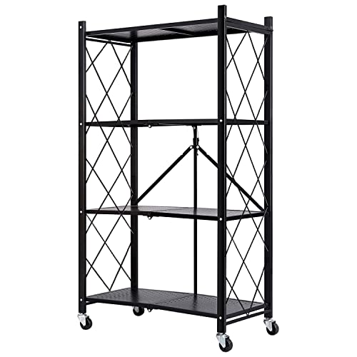 Txxplv - ارفف تخزين من 4 طبقات مع وحدات ارفف معدنية قابلة للطي، رفوف تخزين متحركة لا تحتاج الى تجميع، رفوف تخزين متحركة شديدة التحمل للمطبخ والمراب، أسود