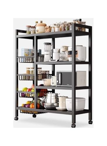 Generic - ارفف تخزين من 4 طبقات مع عجلات، وحدة رفوف معدنية مع سلال سلكية، رف منظم للمطبخ للحمام