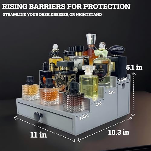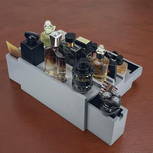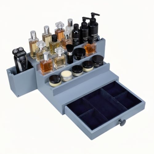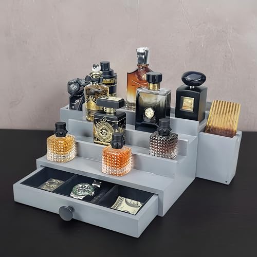 SeLuM - حامل ومنظم زجاجات عطر خشبي أنيق فاخرة للسفر من 4 إلى 5 طبقات أساسي لغرفة الرجال من ذا نو لونغر بليزينغ سيلوم، لون رمادي