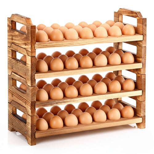 generic - حامل بيض خشبي من 4 طبقات لسطح الطاولة، رف تخزين البيض الطازج من الصنوبر قابل للتكديس، رف جمع وتنظيم المطبخ وعرض بيض البط، قابل للتكديس مع 72 بيضة (بني)