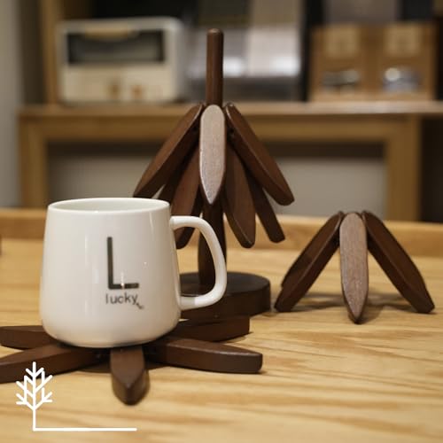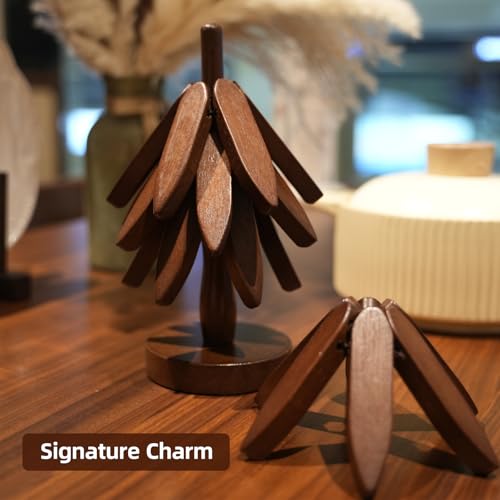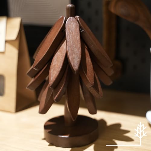 EGADAY - 4 حوامل خشبية للاطباق الساخنة، مجموعة حوامل شجرة الكريسماس، حوامل من خشب الجوز قابلة للطي للاواني والمقالي الساخنة، قواعد اكواب على شكل شجرة للاواني والمقالي والاوعية واباريق الشاي، هدية مثالية للمطبخ