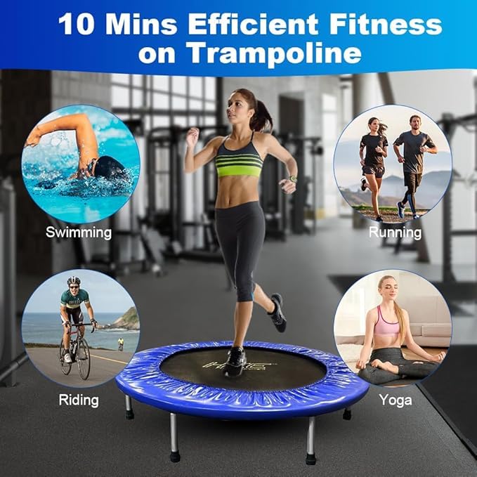 Generic - ترامبولين صغير للياقة البدنية مقاس 40 انش للبالغين والاطفال، ترامبولين صغير الحجم للتمرين للانشطة الداخلية والخارجية، اقصى حمولة 150 كغم