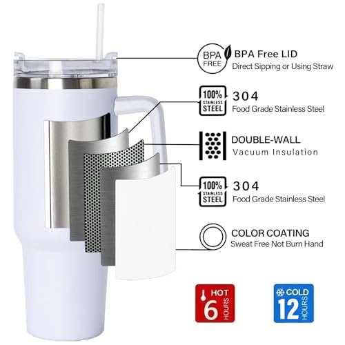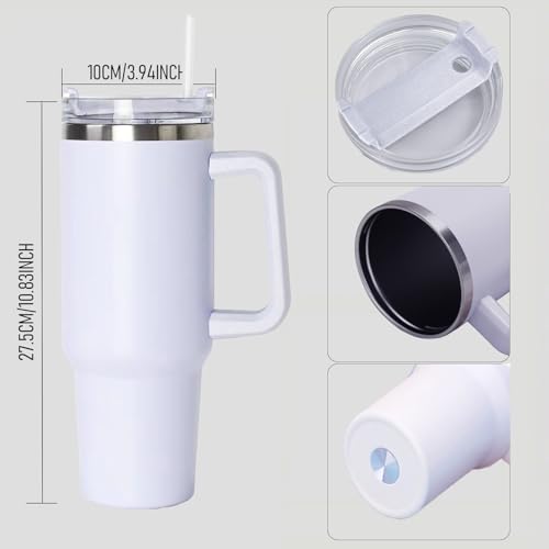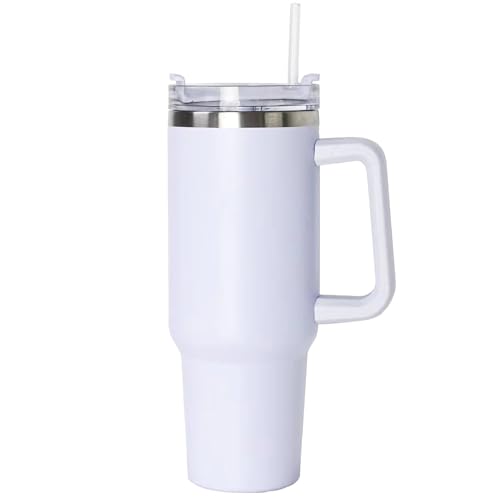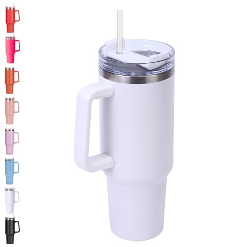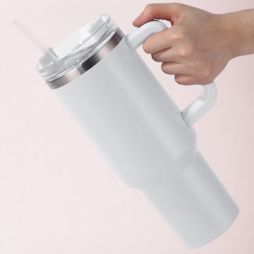 LMX - زجاجة مياه من الفولاذ المقاوم للصدأ مع عزل فراغي مزودة بمقبض وغطاء وشفاطة مناسبة للماء والشاي والقهوة والعصائر والعصائر السموذي والبيرة، لون أبيض، بسعة 1.18 لتر