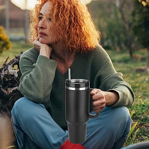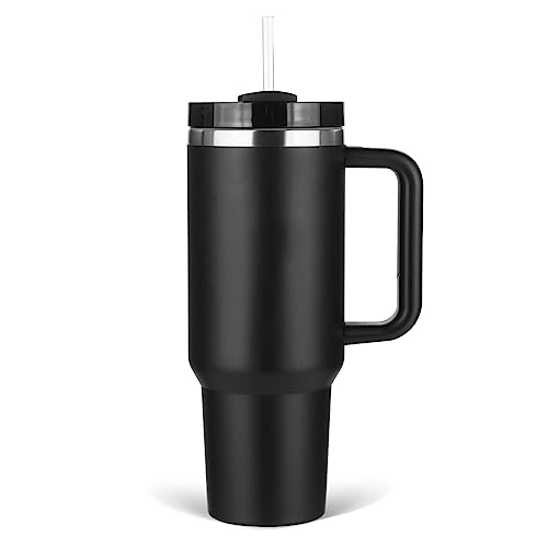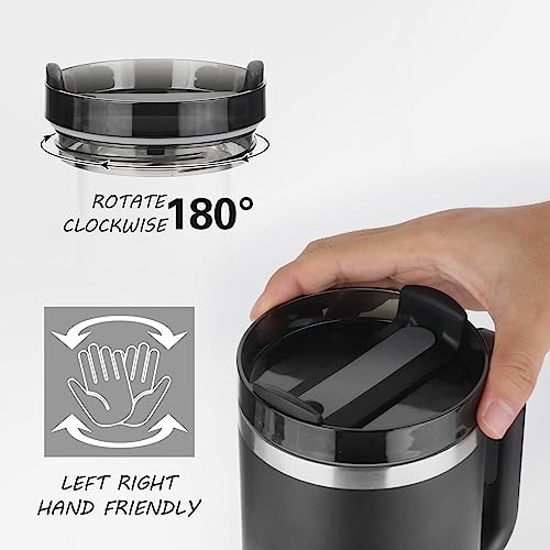 SCORATE - كوب عازل للحرارة من الفولاذ المقاوم للصدأ مع مقبض وغطاء بشفاطة قابل لإعادة الاستخدام، مثالي للسفر والقهوة المثلجة والمشروبات الساخنة والباردة، سعة 1.2 لتر (لون أسود)