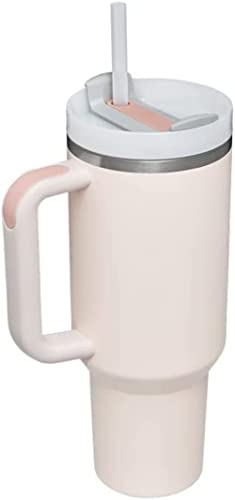 Fun Balloon Company - زجاجة مياه بتصميم مج معزول من الفولاذ المقاوم للصدأ بمقبض وغطاء وشفاطة قابلة لإعادة الاستخدام، للسفر والقهوة المثلجة والمشروبات الساخنة والباردة بسعة 1.13 لتر، وردي فاتح (Rose Quartz)