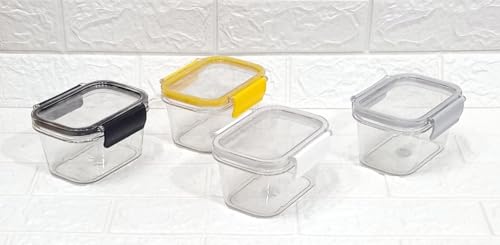 Generic - مجموعة علب تخزين طعام وحفظ حبوب شفافة من الاكريليك بتصميم مربع متين مضاد للرطوبة مكونة 4 قطع حجم 400 ميللى H