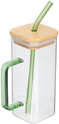 Generic - مج زجاج مربع بشاليموه وغطاء بامبو محكم الغلق سعة 400 مل تصميم شيك للمشروبات الساخنة والباردة مناسب للاستخدام اليومي في المطبخ والبيت والمكتب