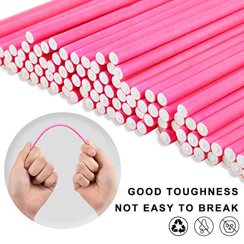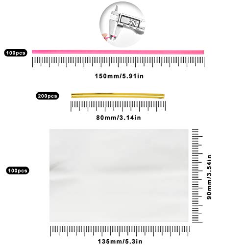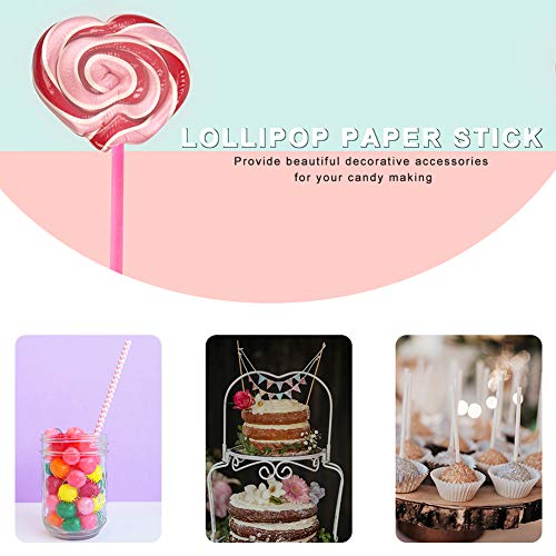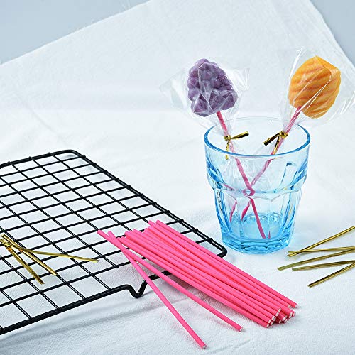Generic - مستلزمات تزيين حلوى الكيك بنفسك تتكون من 400 قطعة؛ 100 قطعة عصي ورقية بلون زهري و100 أكياس مصاصات لولي بوب و200 ربطات حرير ذهبية لمصاصات ومصاصات والحلوى وربطات البسكويت