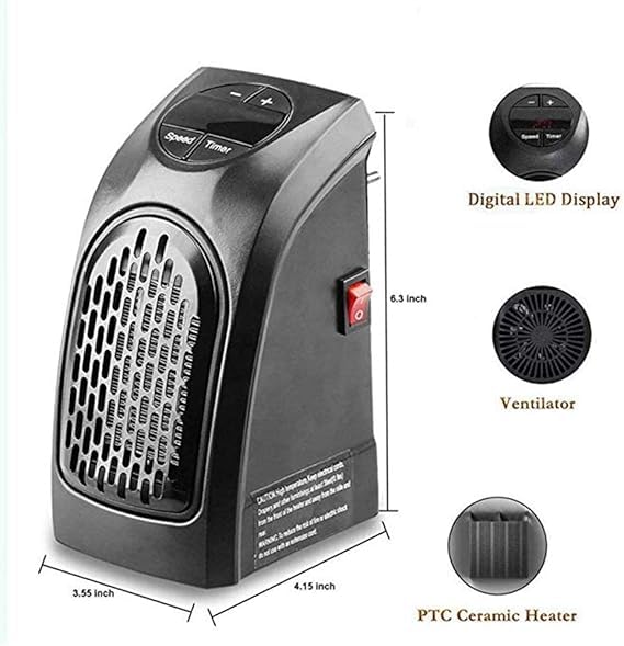 Generic - دفاية كهربائية صغيرة قدرة 400 وات للجراج والحمام والمنزل بتصميم عملي قابل للتعديل ومؤقت وشاشة رقمية (أسود)