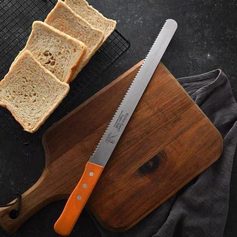 - سكين مسنن جامبو احترافي (40 سم): مصمم للطهاة والخبازين المنزليين الذين يقدرون الدقة. تضمن الشفرة المسننة الطويلة والحادة شرائح ناعمة ومتساوية عبر الشاورما والكعك والخبز دون تمزيقها أو سحقها.
