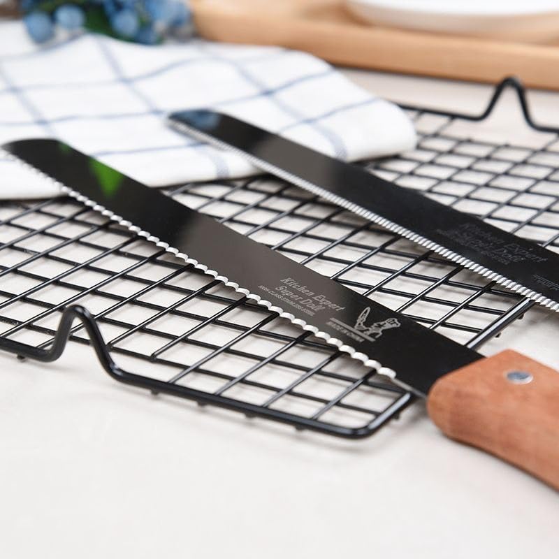 Generic - سكينة كيك مسننة، قطاعة خبز وتورتي احترافية بمقبض خشبي مثالية لتقطيع الكعك والمعجنات والطبقات مثل الشيف، 40 سم، قطعة واحدة