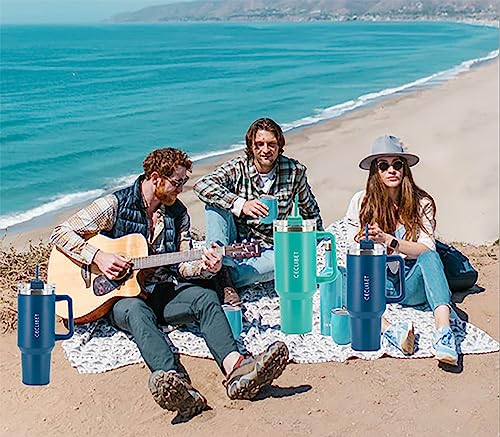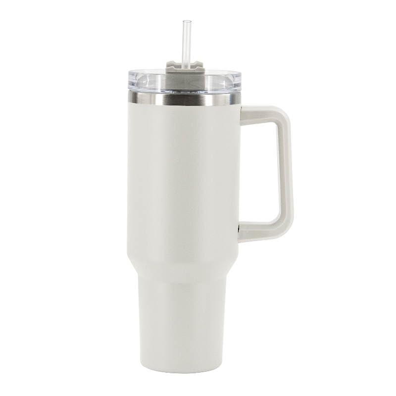 Cecilibet - كوب بسعة 40 اونصة مع مقبض وغطاء ماصة، كوب سفر معزول من الستانلس ستيل للمشروبات الساخنة والباردة، كوب كبير بتصميم بسيط وانيق وعصري للسيارة (ابيض)