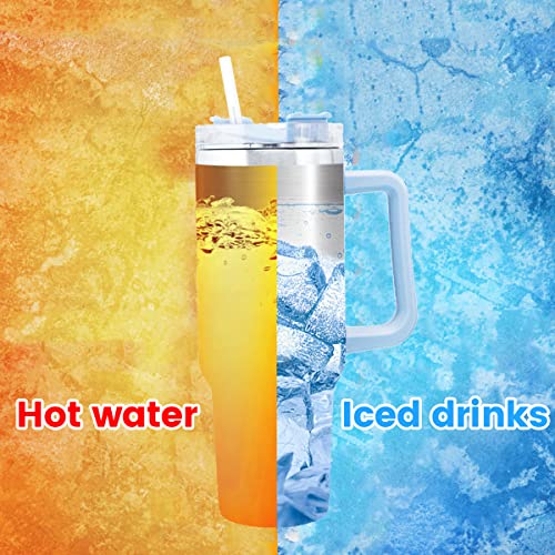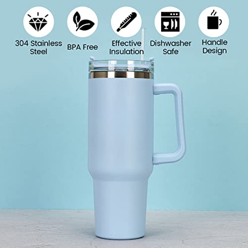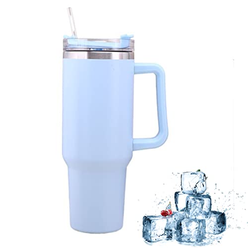 Glvyou - كوب حافظ للحرارة سعة 1.18 لتر مع شفاطة وغطاء ومقبض، كوب قهوة من الفولاذ المقاوم للصدأ معزول بالتفريغ الهوائي ومانع للتسرب بجدار مزدوج للمشروبات الساخنة والمثلجة، كوب سفر محمول للرجال والنساء (أزرق)