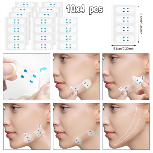 RUICHING - لاصقة غير مرئية لشد الوجه وإخفاء التجاعيد تعمل كشريط مضاد للتجاعيد ولتصغير الذقن المزدوج بالإضافة إلى شد البشرة المترهلة في منطقة الوجه والرقبة، 40 قطعة
