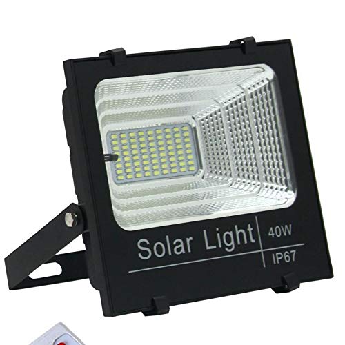 Other - مصباح كشاف يعمل بالطاقة الشمسية 40 واط مع جهاز تحكم عن بعد للاماكن الخارجية والحديقة بلون ابيض LED، ألومنيوم زجاج