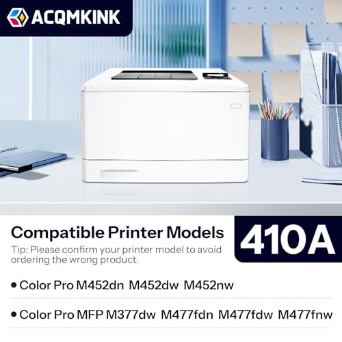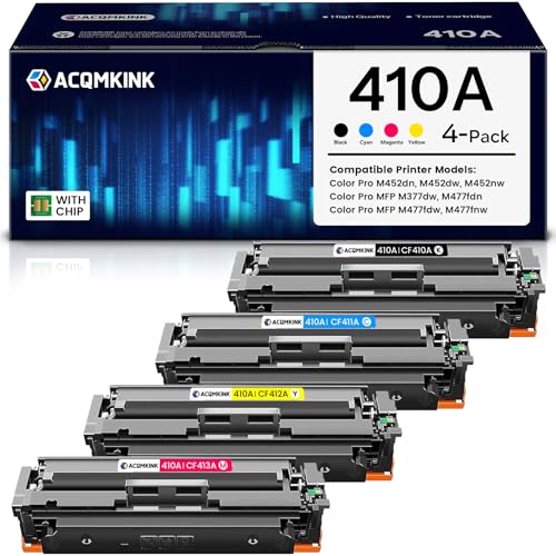 ACQMKINK - خراطيش حبر 410A 410A CF410A متوافقة مع طابعة اتش بي CF411A CF412A CF413A M477fdn كولور برو MFP M477fdw M477fnw M452dn M452nw M477fdn M452dw، 4 عبوات حبر (أسود/ أزرق (Cyan)/ أصفر/ أرجواني (Magenta)