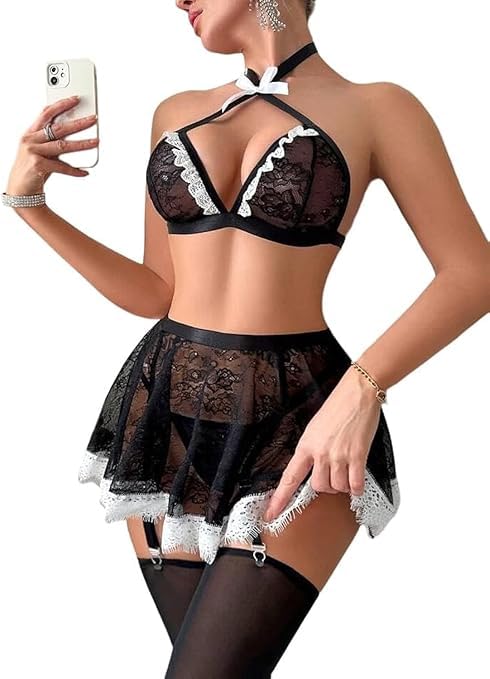 Generic - لانجرى تنكرى خادمة سكسى لانجيرى مثير بلاى سوتس قصير قميص نوم انيق بيبي دولز حريمي شفاف من كيان للتجارة كود 412 (اسود, M)، اقمشة