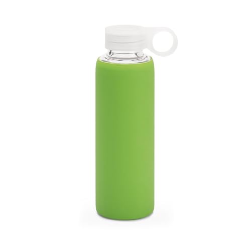 Generic - زجاجة مياه من زجاج البوروسيليكات سعة 420 مل مع حافظة سيليكون وغطاء مانع للتسرب | قابلة لاعادة الاستخدام وصديقة للبيئة للسفر والمكتب وصالة الالعاب الرياضية والترطيب اليومي (اخضر)