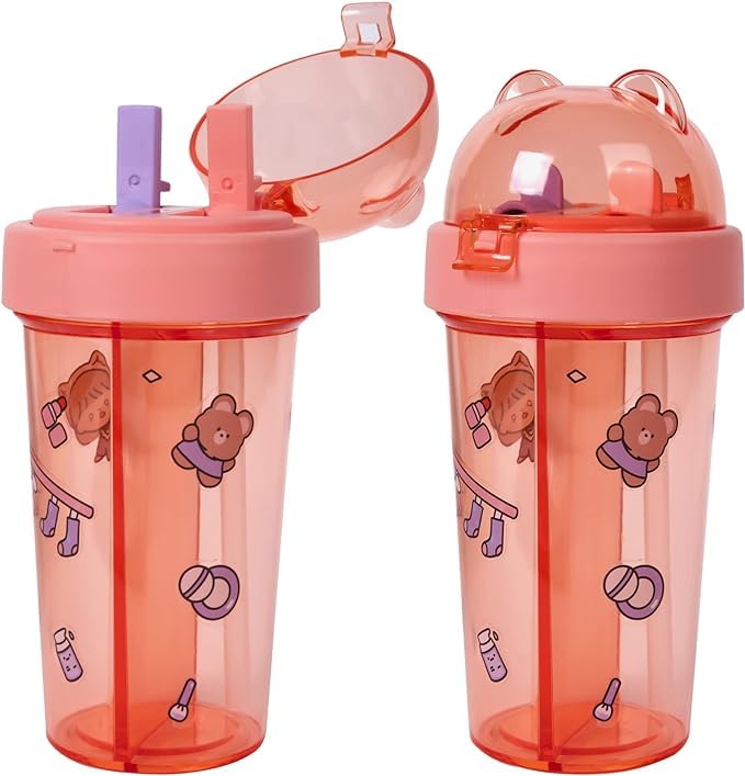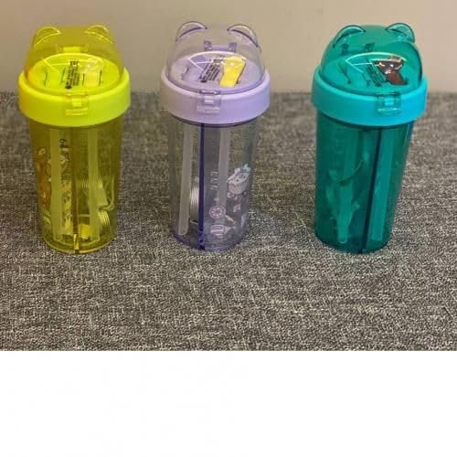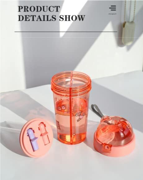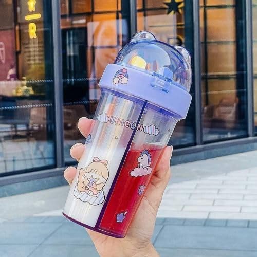 Generic - زجاجة مياه سهلة الحمل ومزدوجة الاستخدام بتصميم جديد عملي ومبتكر ب عدد 2 ماصة للانشطة الخارجية والسفر والرياضة سعة 420 مل، بلاستيك