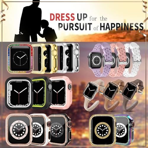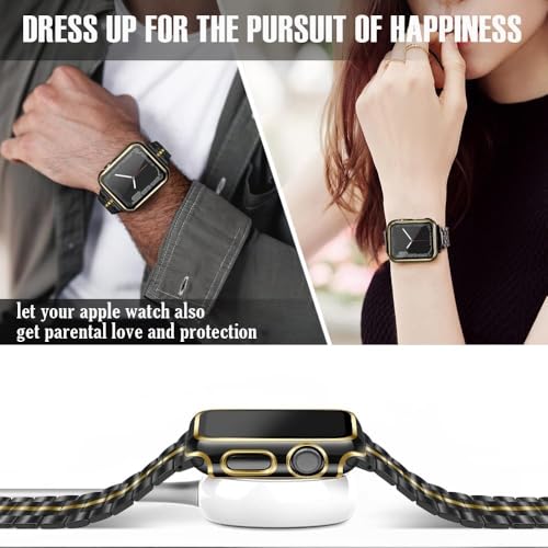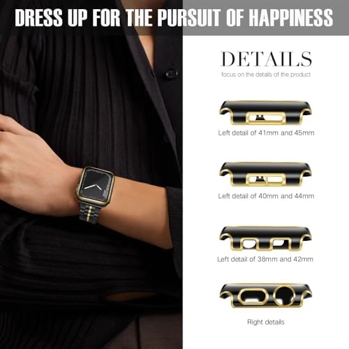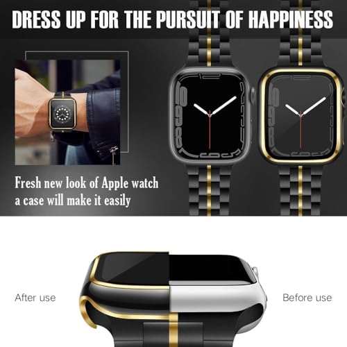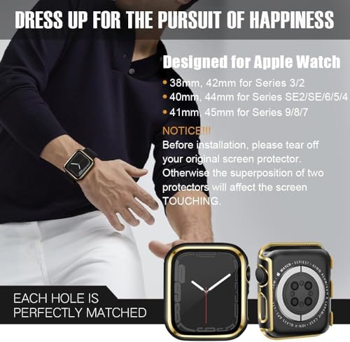 ELMO3EZZ - جراب حماية من البولي كربونات مع شاشة مدمجة الزجاج المقوى متوافق ساعة ابل واي ووتش سلسلة 8 - 7 - SE 6 5 4 - 3 2 مقاس 42 ملم للاختيار لون أسود وحواف ذهبية