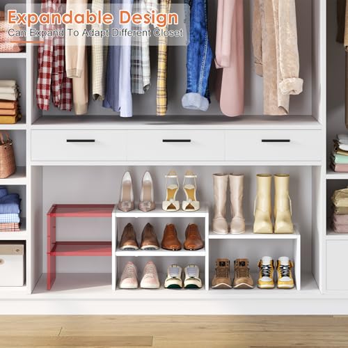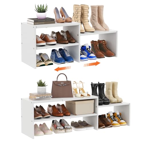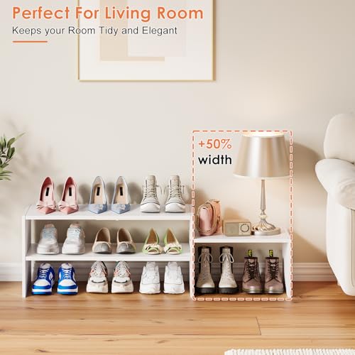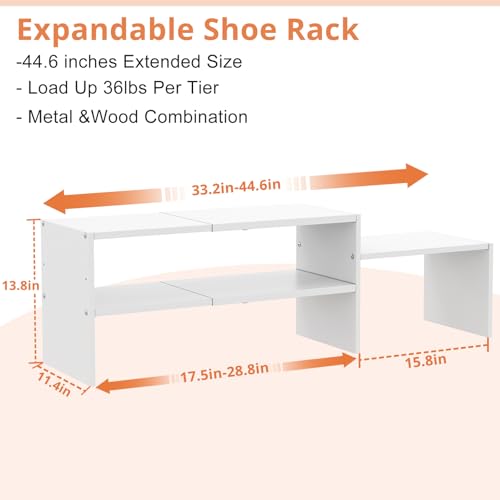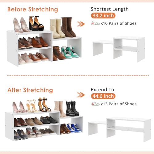 Hencawima - منظم احذية ابيض قابل للتوسيع 44.6 انش للخزانة، ارفف تخزين احذية صغيرة قابلة للتعديل، حامل احذية من الخشب المعدني للخزائن والمدخل والباب الامامي والمساحات الضيقة، 10-13 زوج