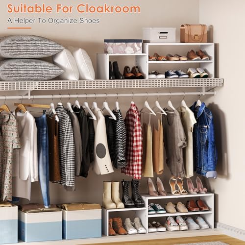 - [قابل للتعديل]: --- يتمدد رف الأحذية الأبيض الخاص بنا من 33.2 إلى 44.5 انش، ويناسب بسهولة خزانة ملابسك أو المدخل أو الزاوية الضيقة. تتسع لـ 10-16 زوجًا من الأحذية لتلبية احتياجاتك اليومية.