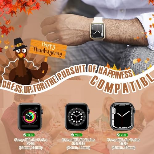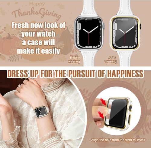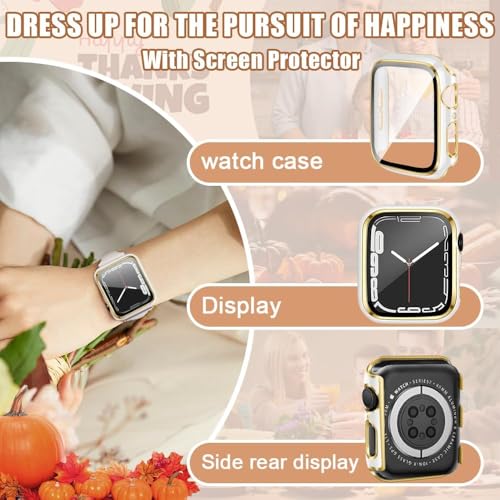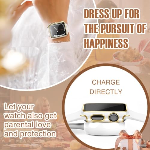 ELMO3EZZ - جراب 44 ملم متوافق مع ساعة ابل شاشة حماية مدمجة من الزجاج المقوى غطاء البولي كربونات لسلسلة اي ووتش 9 - 8 - 7 - SE 2rd 6 5 4 - 3 2 للاختيار بينها ابيض + حافة ذهبية .