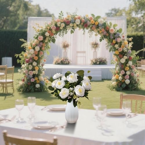 Floravally - زهور الفاوانيا الصناعية مصنوعة من الحرير بملمس واقعي، مثالية لتزيين حفلات الزفاف والطاولات والديكور الحفلي، تناسب صنع الباقات اليدوية، طقم كبير من الورود الصناعية تشبه الحقيقة، 45 غصن(9حزم)، لون أبيض