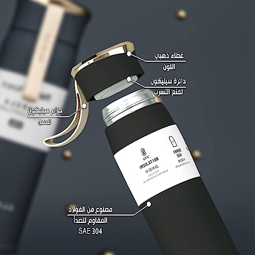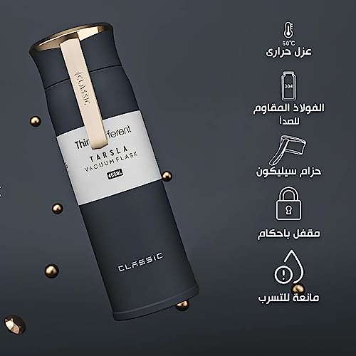 Generic - ترمس حراري مقاوم للتسرب من الستانلس ستيل معزول بتفريغ الهواء، زجاجة مياه بجدار مزدوج، مج ترمس معدني، أسود، 450 ملليلتر