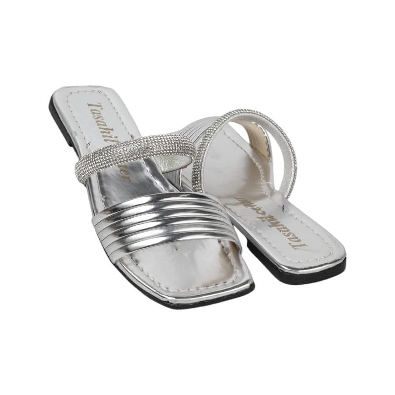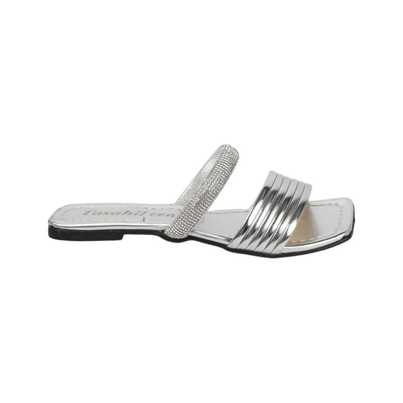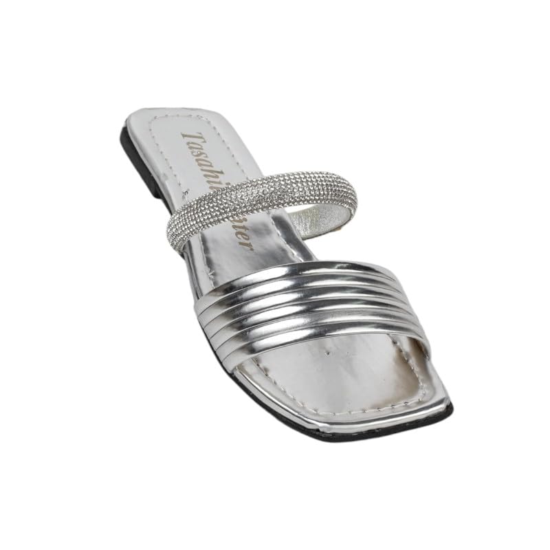 Generic - سليبر بنات فلات جلد 457 فضى 35/36