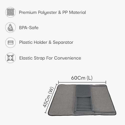 - 【أداة مطبخ متعددة الأغراض】يعمل بساط التجفيف متعدد الاستخدامات هذا بشكل مثالي مع الأطباق والأكواب والأواني وأدوات الطبخ الصغيرة، مما يوفر حلاً عمليًا وموفر للمساحة وأنيقًا لأي مطبخ عصري، يجمع بين كفاءة التجفيف السريع والتنظيم والتبطين الواقي في ملحق أساسي واحد.