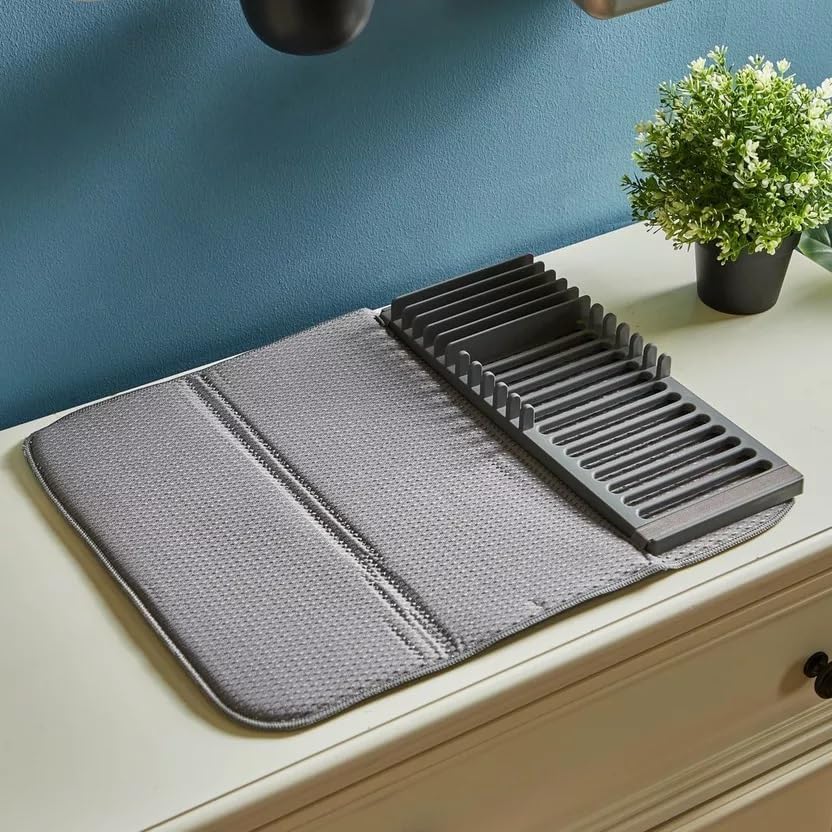 AREXOL - بساط تجفيف اطباق من المايكروفايبر مقاس 45 سم مع حامل ملعقة لتجفيف سريع وحماية ادوات المطبخ من الخدوش