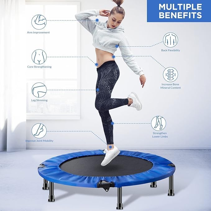 - تحسين التوازن والقوة: ترامبولين قابل للطي يحسن بشكل كبير من التنسيق العام والمرونة ويقوي قلبك ووظائفه الحيوية مع مكاسب القلب والأوعية الدموية والهوائية.