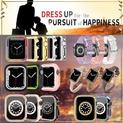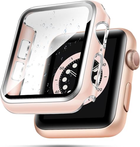 ELMO3EZZ - جراب 45 ملم متوافق مع ساعة ابل، مع شاشة حماية مدمجة من الزجاج المقوى، غطاء من البولي كربونات لسلسلة اي ووتش 8/7/SE 6 5 4/3 2 للاختيار من بينها (45 ملم، حافة بينك + فضي)