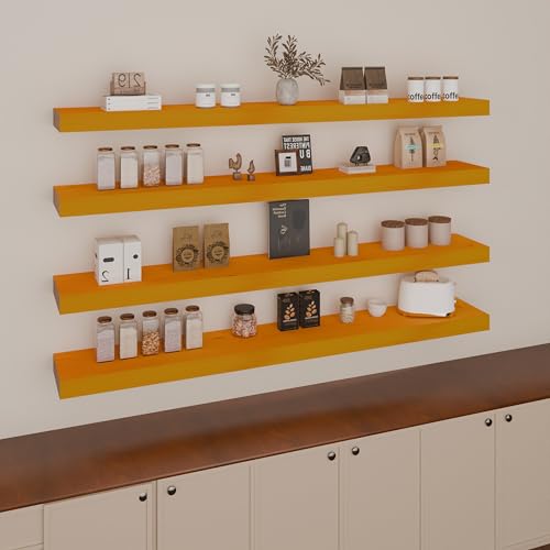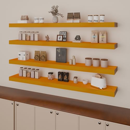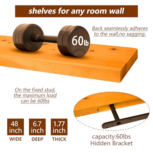 HDDFER - ارفف خشبية عائمة 48 انش للجدار، ارفف تخزين مثبتة على الحائط، رف كتب عائم فاخر من الخشب الصلب، رف طويل ريفي، 48 × 6.7 × 1.77 انش، مثالي للمطبخ وغرفة المعيشة وديكور المنزل