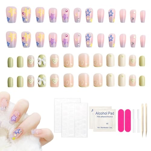 - 🌟 مجموعة أظافر كاملة: تحتوي هذه العبوة على 24 أظفر اصطناعي بنمط لبن الماتشا و24 أظفر اصطناعي بنمط نجمة و2 مجموعة من الأدوات الأساسية. اختاري من بين صمغ الأظافر أو الصمغ الجيلي المتضمن لملاءمة آمنة ودائمة.