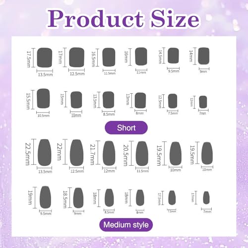 - 🎨 تناسب جميع مقاسات الأصابع: تتميز هذه الأظافر الاصطناعية التي تعمل بالضغط بـ 12 مقاسًا مختلفًا، وتضمن ملاءمة مثالية لكل إصبع. سهلة التركيب والإزالة ويمكن إعادة استخدامها بدون إتلاف الأظافر الطبيعية.