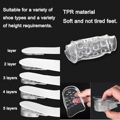 - ✅【زيادة الطول تدريجيًا】امنح نفسك مظهرًا أطول وأكثر ثقة مع كعب السيليكون الطبي الذي يضيف ارتفاع يصل حتى 4 سم، بفضل تصميمه متعدد الطبقات القابل للتعديل ليتناسب مع جميع الأحذية والاستخدامات اليومية.