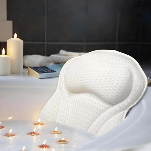 Generic - وسادة حمام شبكية ناعمة رباعية الأبعاد للاستحمام الفاخر، تمنح دعمًا مريحًا للرأس والرقبة، مع 6 أكواب شفط قوية وغير قابلة للانزلاق لتجربة استرخاء
