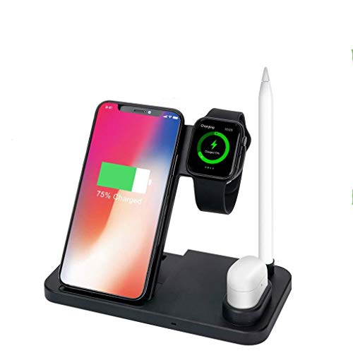 Other - شاحن لاسلكي 4 في 1 للموبايل وساعة ابل وايربودز - اسود