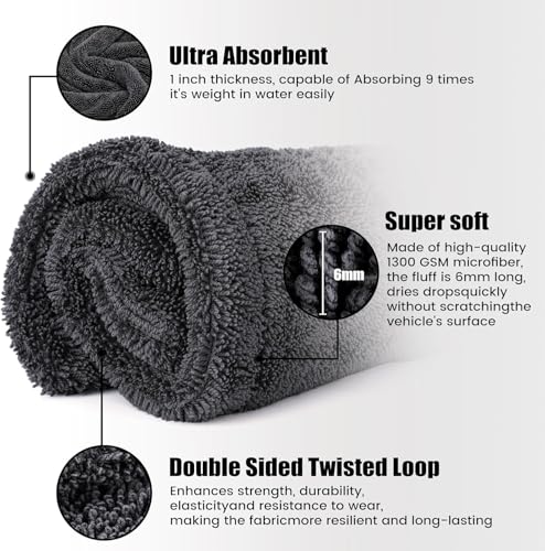 - فائقة الامتصاص ومتعددة الاستخدامات - تم تصميم تجفيف مناشف السيارة هذه لتكون ناعمة وفعالة للغاية. يضمن التصميم بدون حواف والمايكروفايبر الفاخر تنظيفًا سلسًا وخاليًا من الخدوش على جميع اللمسات النهائية للطلاء. تتميز مناشف السيارات المصنوعة من المايكروفايبر بوزن 1300 غرام لكل متر مربع بأنها فائقة الامتصاص، وتمتص أكثر من 6 مرات أكثر من المناشف الأخرى. الحجم الكبير والتصميم المتطور المصنوع من المايكروفايبر يجعله مثاليًا لتجفيف المركبات الكبيرة مثل سيارات الدفع الرباعي والسيارات