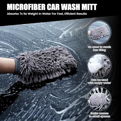 - قفاز غسيل يدوي لطيف وفعال - قفاز تنظيف السيارة مع نودلز الشانيل المصنوعة من المايكروفايبر الناعم عالي الكثافة على الوجهين يحمل 7 أضعاف وزنه في الماء والصابون، مما يسمح لك بتغطية الأسطح الكبيرة بنعومة وسرعة. تتشكل بشكل جيد على شكل اليدين، مما يتيح سهولة الوصول إلى كل مكان صغير مثل الحواف وفتحات التهوية. سوار معصم مرن يساعد على الحفاظ على القفاز في مكانه في متناول اليد
