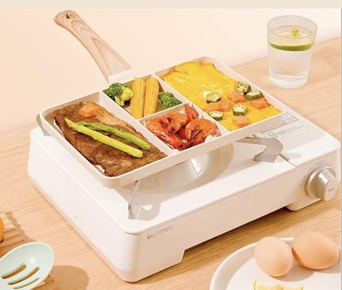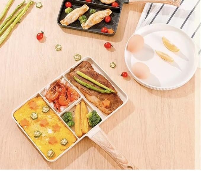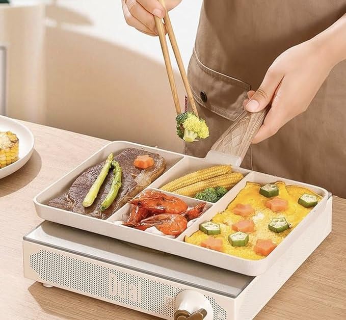 Generic - طاسة قلي مقسمة 4 في 1 بطلاء جرانيت ممتاز غير لاصق كريمي طلاء فاخر