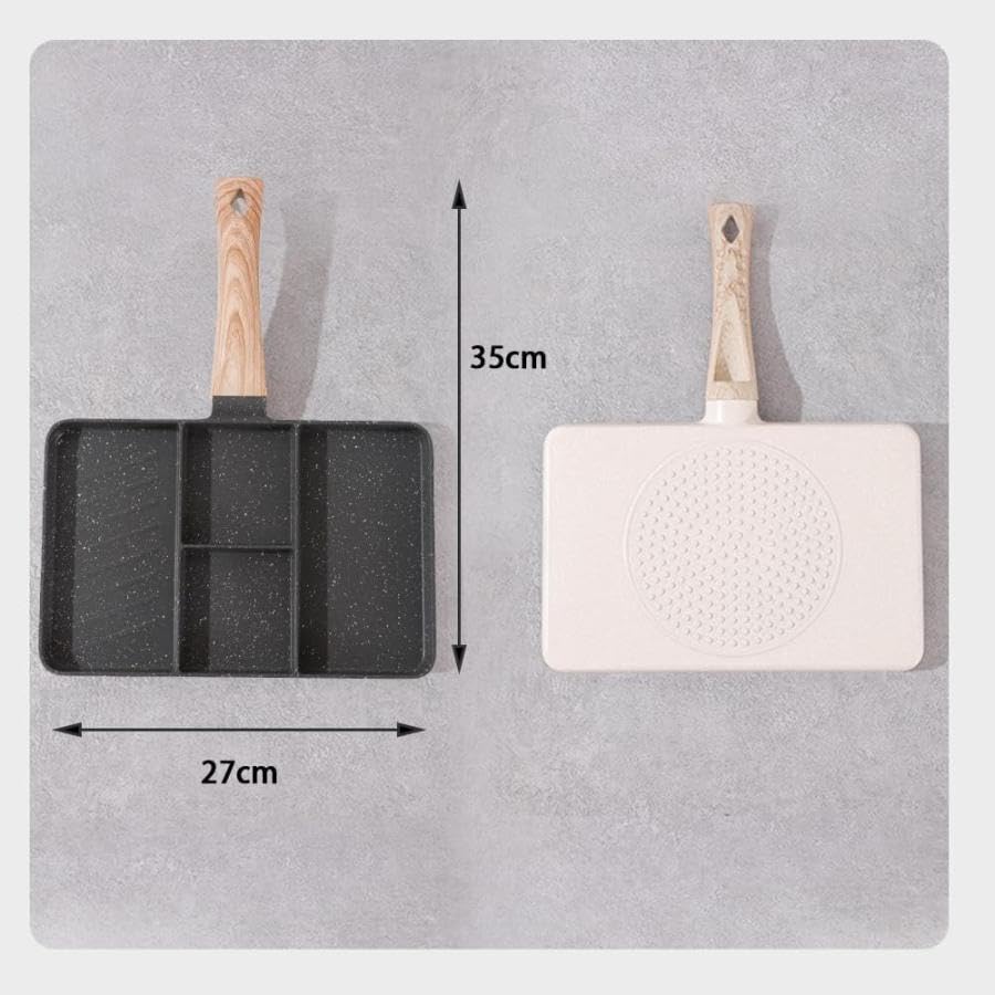 - - تصميم متعدد الأقسام يتضمن جزأين بأبعاد مختلفة (الطول 27.5 سم × العرض 18 سم). - سهلة التنظيف ومصنوعة من مواد عالية الجودة. - مقبض خشبي مريح لسهولة الاستخدام. - تسخن بسرعة وتوزع الحرارة بالتساوي لإعداد الطعام بشكل مثالي.